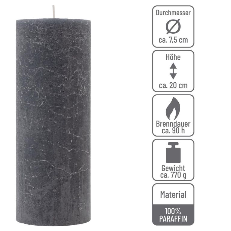 Decentný antracit sviečka vysoká 20 cm sa postará o svetelný akcent v každej miestnosti. Horí až 90 hodín, v praktickej sade 2 ks.