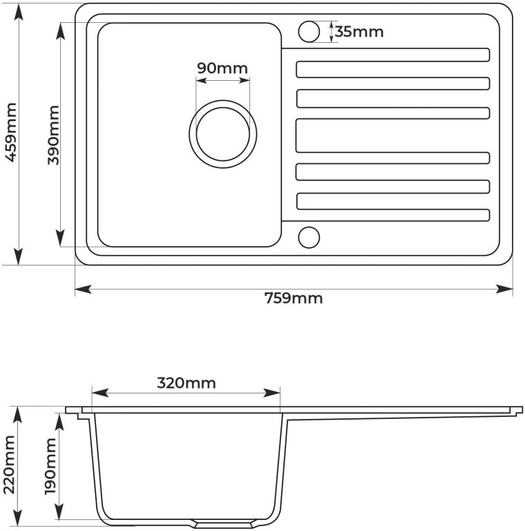 Náš granitový drez je možné namontovať pod alebo nad dosku a je možné ho tiež inštalovať obojstranne, takže odkvapkávač môže byť na ľavej alebo pravej strane. S celkovými rozmermi 75,9 x 22 x 45,9 cm sa náš drez skvele hodí ku kuchynskej skrinke s rozmermi: 81 x 50 cm. Tento obdĺžnikový vložený drez je vyrobený z 80 % z pravého kremenného kameňa a je odolný voči teplu, škvrnám, poškriabaniu a mechanickým a tepelným nárazom.