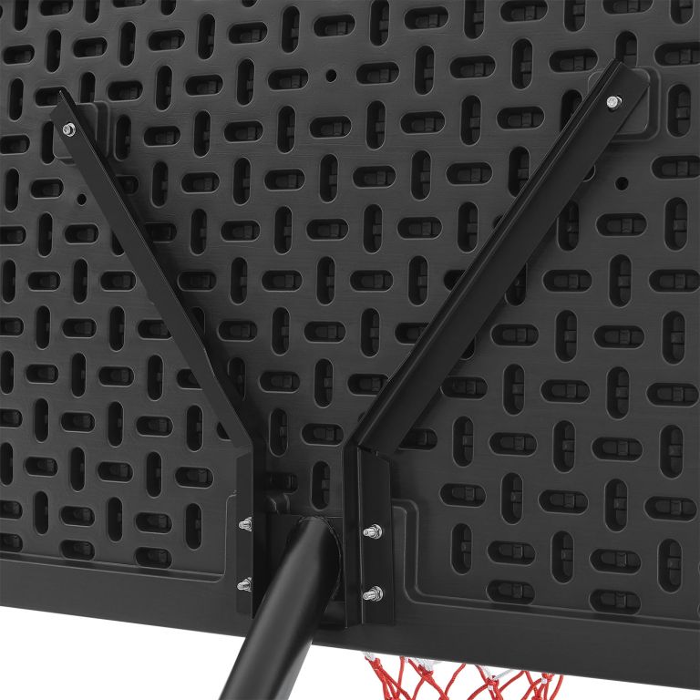 Robustná konštrukcia zaisťuje dlhú životnosť a stabilitu aj pri intenzívnom používaní. Jednoduchá montáž a možnosť naplnenia podstavca vodou alebo pieskom poskytujú bezpečné a pevné ukotvenie. Vďaka veľkým kolieskam je možné kôš ľahko presúvať, čo oceníte pri zmene miesta hry alebo pri upratovaní.
