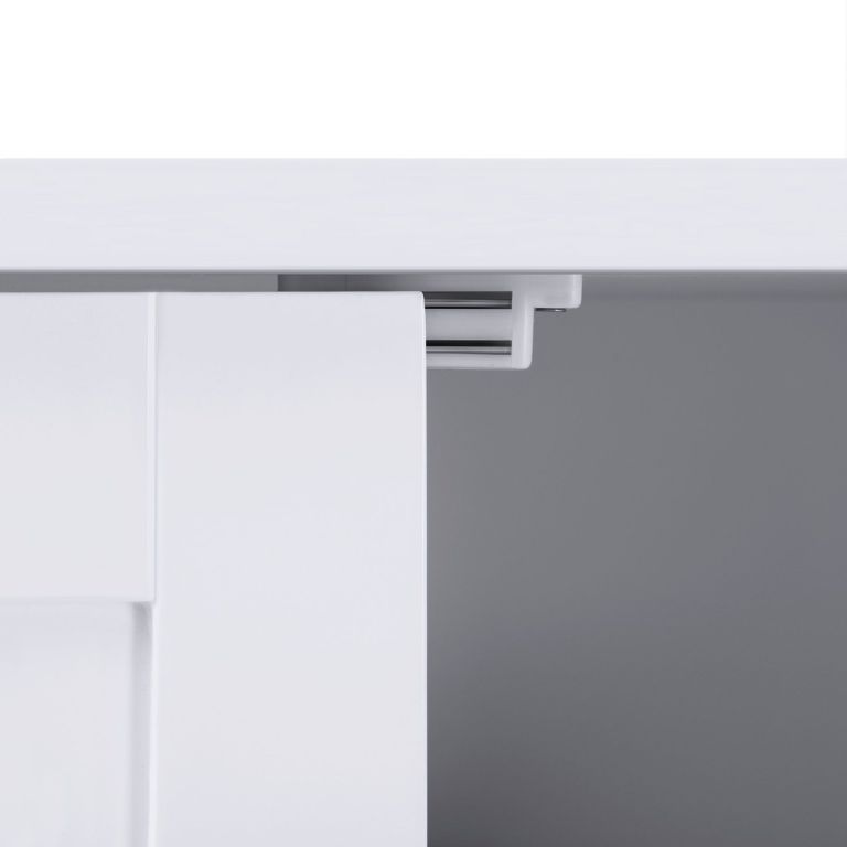 Táto elegantná kúpeľňová skrinka v čistej bielej farbe kombinuje jednoduchý dizajn, pevnú konštrukciu a praktické rozdelenie priestoru. Dvoje dvierka skrývajú dve výškovo nastaviteľné police, ktoré môžete prispôsobiť veľkosti predmetov, ktoré chcete uložiť. Hladký lakovaný povrch sa ľahko udržiava a odolná MDF doska zaručuje dlhú životnosť.