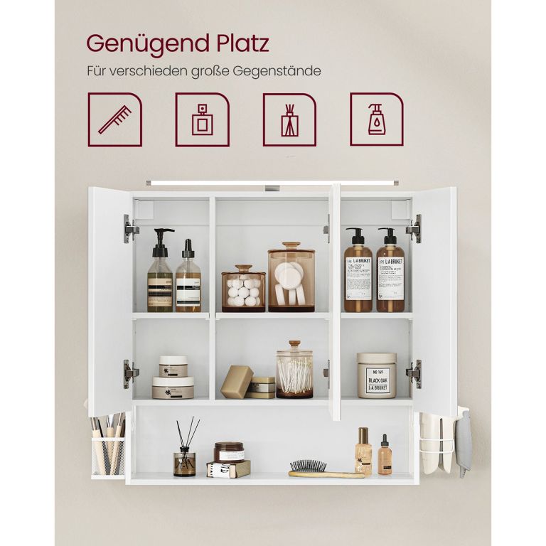 Dajte svojej kúpeľni nový vzhľad s touto elegantnou bielou skrinkou. LED osvetlenie poskytuje jasné svetlo, ktoré oceníte pri rannom prípravovaní sa alebo večernom odličovaní. Tri zrkadlá a dostatok úložného priestoru vám uľahčia každodennú rutinu a dodajú vašej kúpeľni moderný nádych.