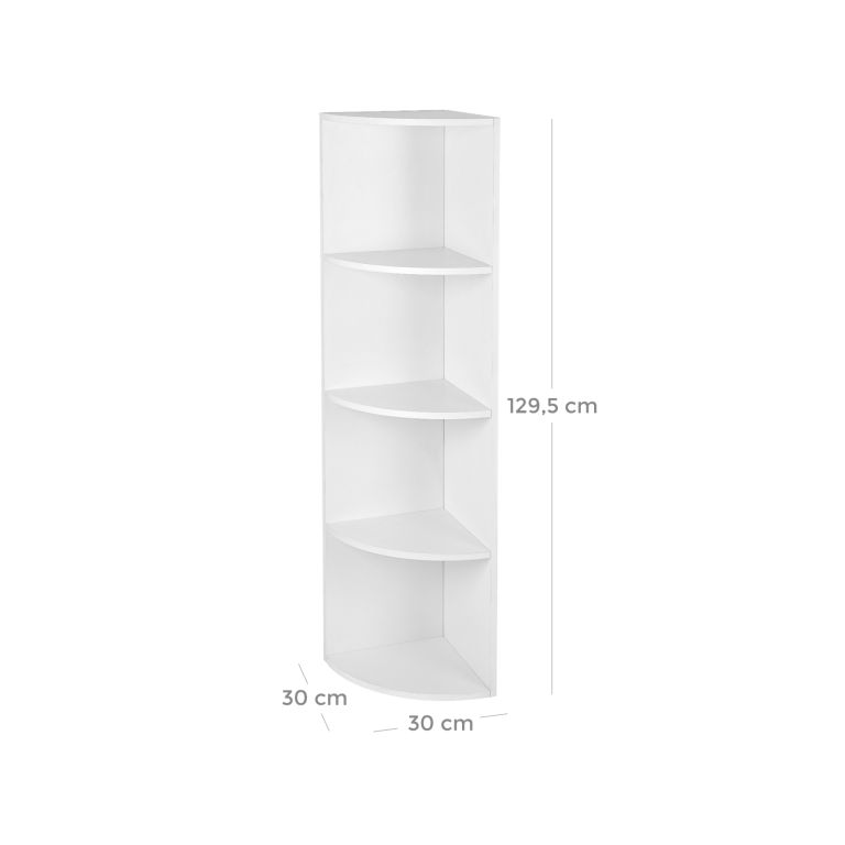 Biela rohová polica, 4 police, 129,5 x 30 x 30 cm