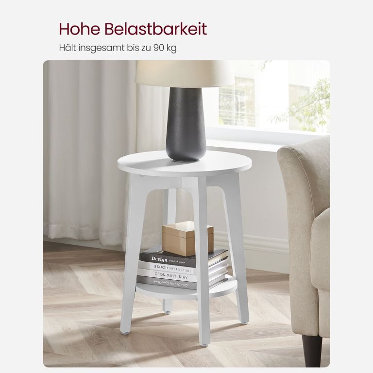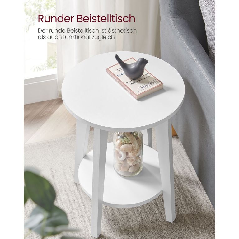 Vnesiete do svojho domova sviežu eleganciu s týmto moderným bielym stolíkom. Jeho čisté línie a okrúhly tvar sa ľahko hodia do každého interiéru a ponúkajú priestor na kávu, kvety alebo vašu obľúbenú knihu. Dve úrovne úložného priestoru vám umožnia mať všetko dôležité po ruke a zároveň štýlovo vystaviť dekorácie alebo suveníry.