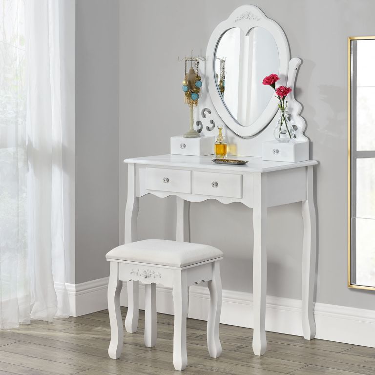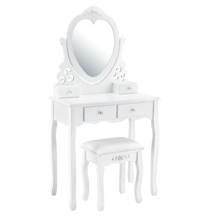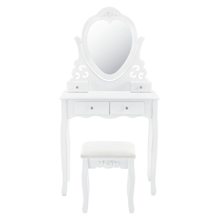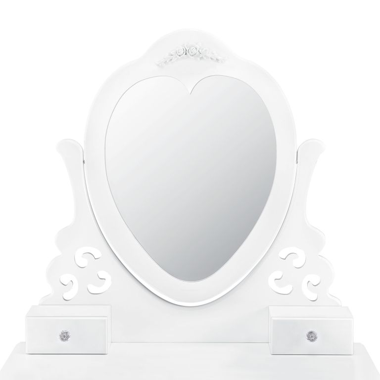 Biely toaletný stolík Julia so srdcovým zrkadlom a taburetom