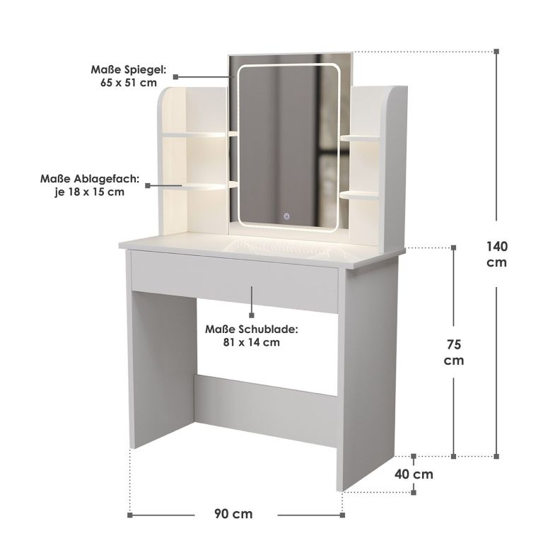 Vneste do svojho domova eleganciu a poriadok s toaletným stolíkom Zoey. LED zrkadlo vám poskytne ideálne svetlo na líčenie a úpravu vlasov, zatiaľ čo šesť políc zaistí dostatok priestoru pre všetky vaše poklady. Užite si chvíle starostlivosti o seba v pohodlí domova.