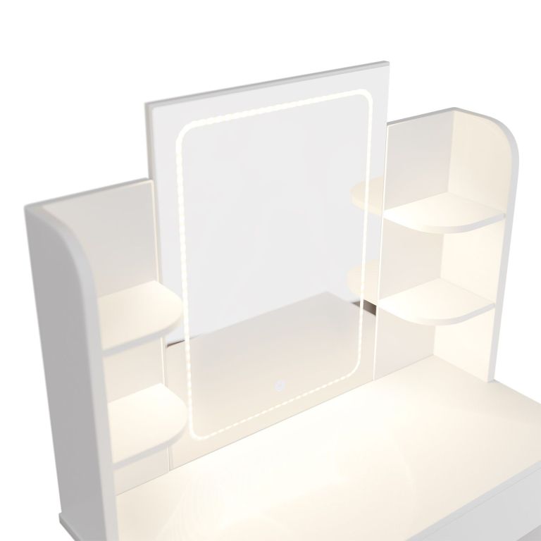 Biely toaletný stolík Zoey s LED zrkadlom a úložnými policam