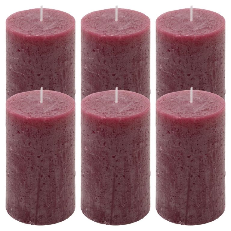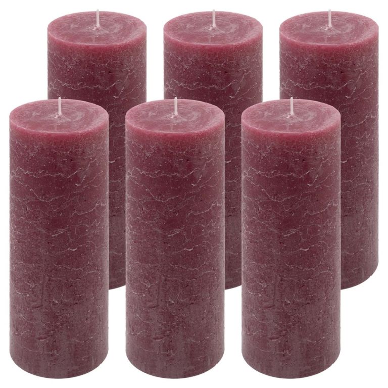 Bordó parafínová sviečka rustikálna 20 cm, 90 h, sada 6 ks