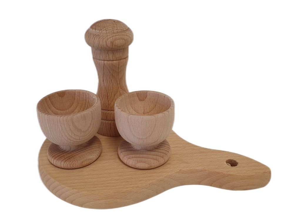 Set obsahuje všetko potrebné – slánku, prkýnko a dva stojany na vajíčka. Bukové drevo je pevné, odolné a ľahko sa čistí. Sada je bez povrchovej úpravy, takže vynikne prirodzená štruktúra dreva.
