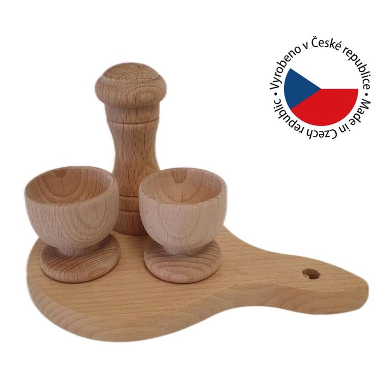 Bukový raňajkový set s držiakmi na vajíčka a slánkou