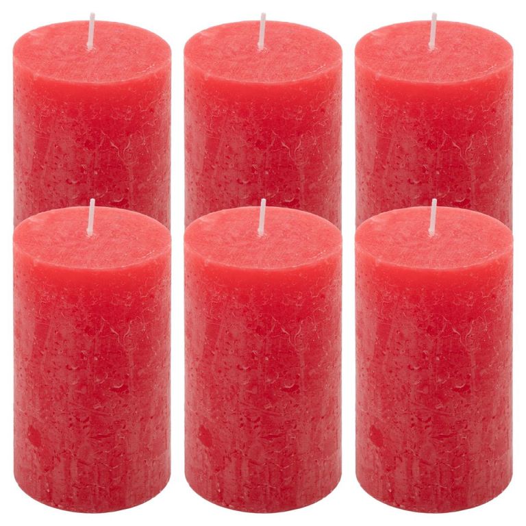 Červená parafínová sviečka rustikálna 20 cm, 90 h, súprava 6