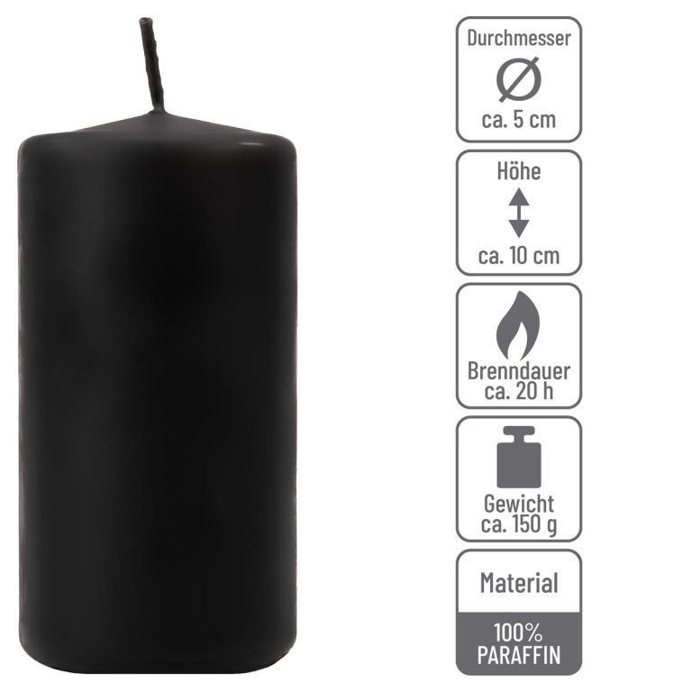 Čierna parafínová sviečka 10 cm, 20 h horenia, sada 8 ks