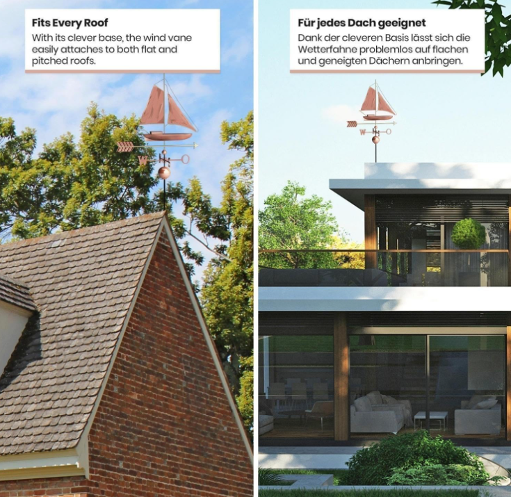 Vneste do svojho domova jedinečný šarm a eleganciu s touto ručne vyrábanou medenou koruhvičkou v tvare plachetnice. Nielenže skrášli vašu strechu, ale zároveň ochráni váš dom pred nežiaducimi vtákmi. Symbol vetra a slobody dodá každej streche osobitý štýl a stane sa originálnym doplnkom, ktorý zaujme každého návštevníka.