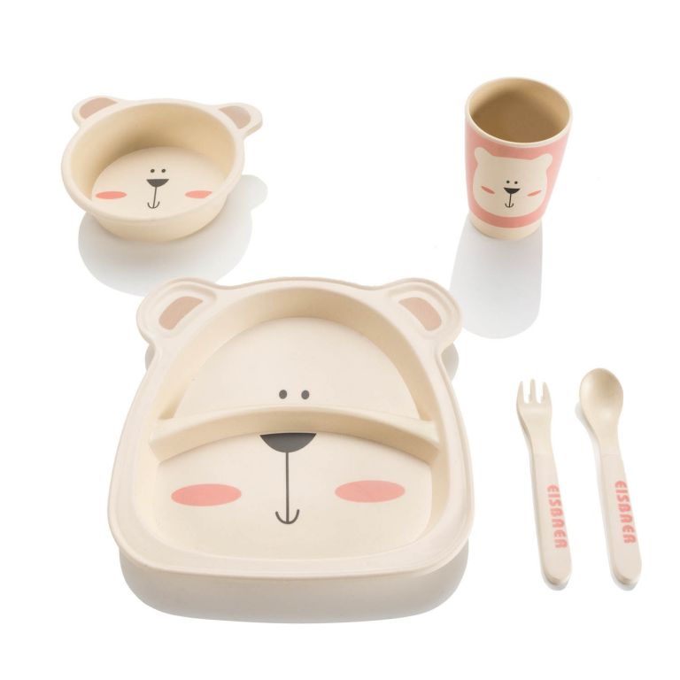 Každá sada sa skladá z veľkého taniera (ktorý je rozdelený, aby sa chute na tanieri nemiešali), z misky na polievku, poháriku na pitie, lyžice a z vidličky. Riad je skladný a ľahký, preto ho oceníte aj pri výltoch, dovolenkách alebo cez noc u babičky - "Pozri babi, to je môj tanier". Každé dieťa si túto sadu zamiluje vďaka krásnemu prevedeniu a rodičia ju budú milovať, pretože sa už nebudú musieť báť rozbitého porcelánu všade po miestnosti.