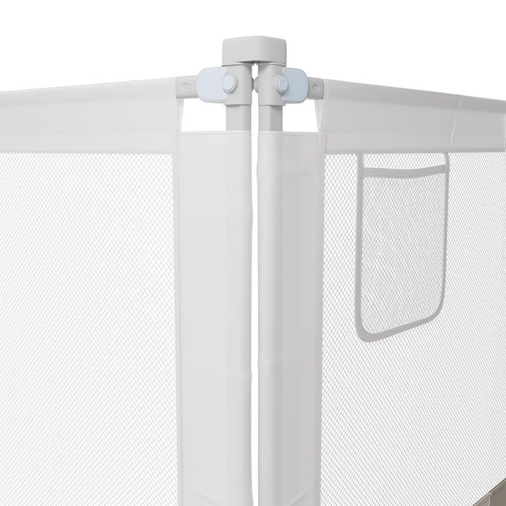 Robustná konštrukcia z ocele a odolná tkanina Oxford zaisťujú dlhú životnosť a jednoduchú údržbu. Jednoduché skladanie a montáž umožňujú rýchle použitie doma aj na cestách. Zábranu je možné kombinovať s ďalšími dielmi pre väčšiu bezpečnosť.