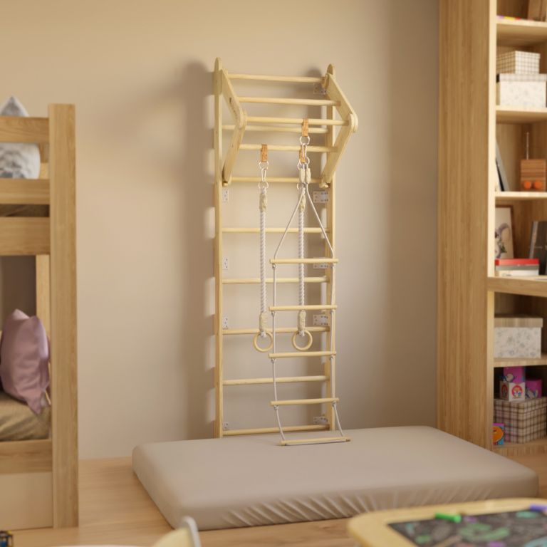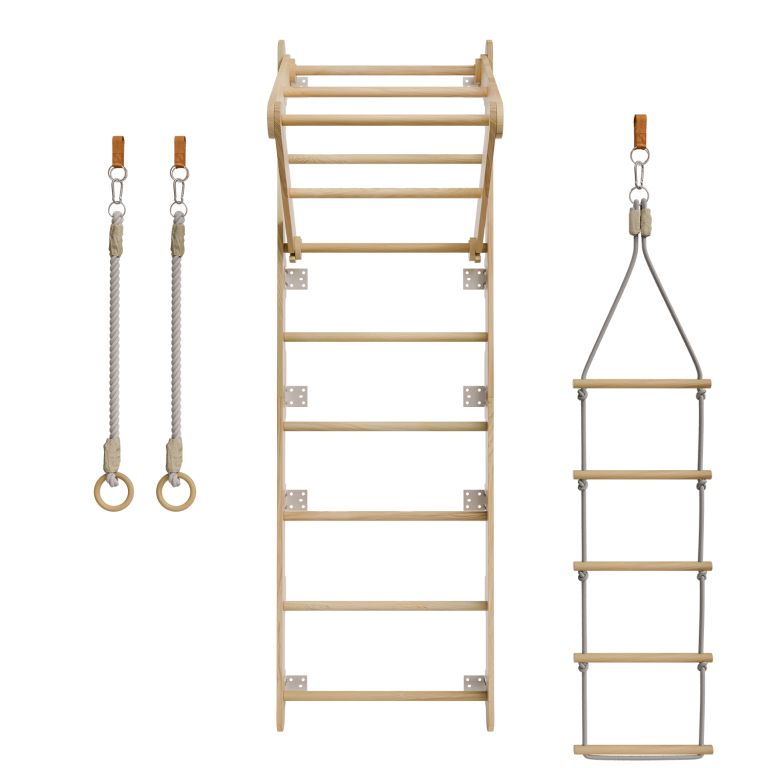 Vneste do detskej izby viac pohybu a radosti. Drevené rebriny s bohatým príslušenstvom poskytnú deťom priestor, kde môžu rozvíjať svoje schopnosti, posilňovať telo a užívať si aktívnu zábavu každý deň. S gymnastickými kruhmi, hrazdou a lanovým rebríkom sa obyčajné hranie premení na dobrodružstvo plné lezenia a objavovania.