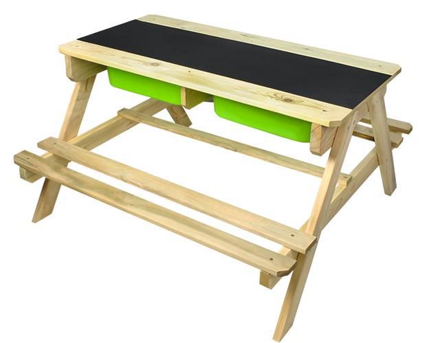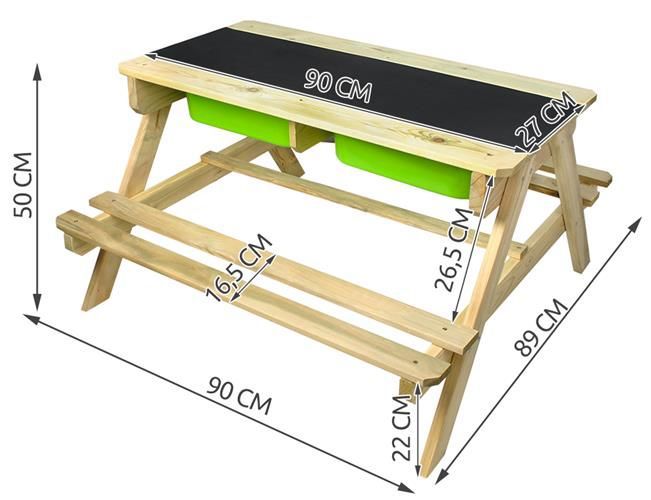 Príjemné chvíle na záhrade alebo terase môžu byť zaujímavejšie vďaka spoločným aktivitám strávenými za týmto stolom. Tento drevený set s uzatvárateľnými kontajnermi, pohodlnými lavičkami a stabilným stolom bude dobrým riešením pre aktivity a hry pre deti. Vyrobené z prírodného na dotyk príjemného borovicového dreva.