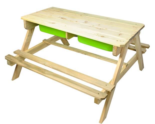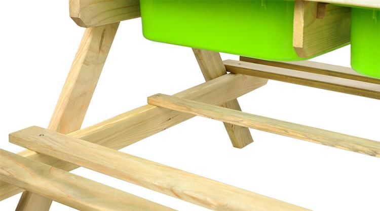 Stabilný stôl a sedadlá zaručujú pri hre správnu podporu a bezpečnosť. Celá sada má nízku hmotnosť, čo uľahčuje prenášanie, takže dospelý môže rýchlo zmeniť miesto na hranie. Prírodný drevený povrch sa ľahko udržiava čistý. Stôl s lavičkami preto môžete použiť aj na piknik a občerstvenie najmladších účastníkov na terase alebo záhrade.