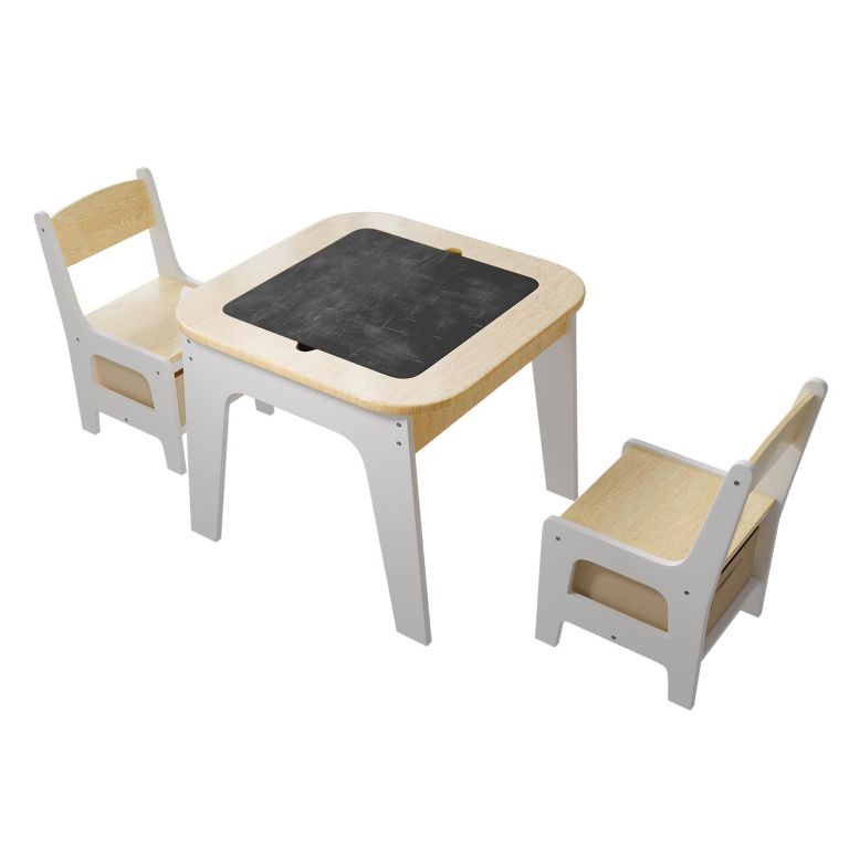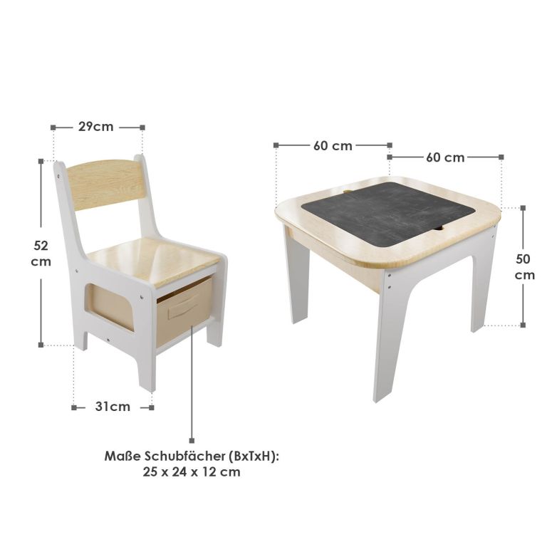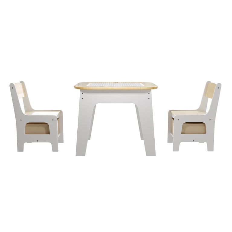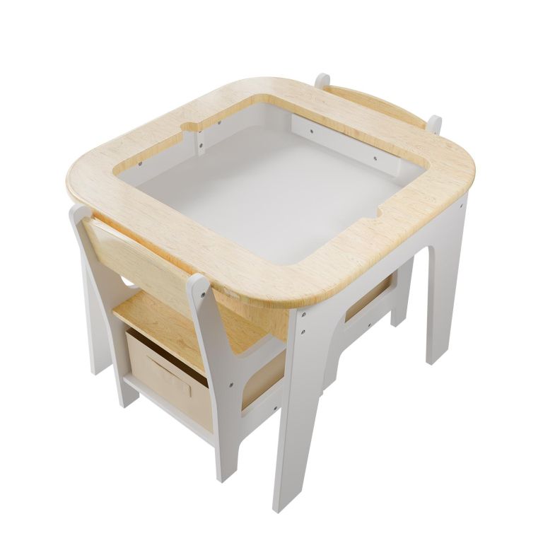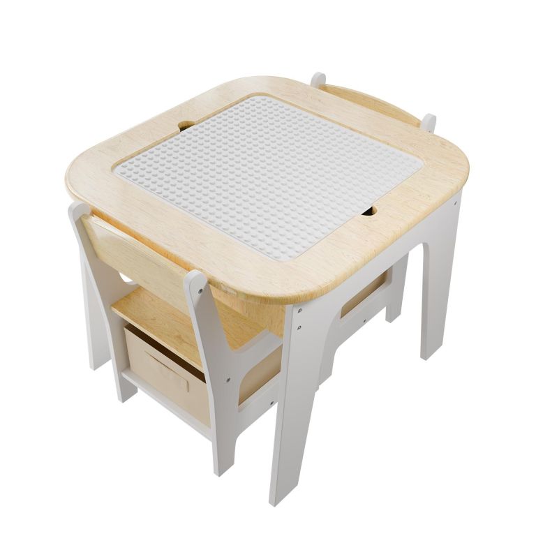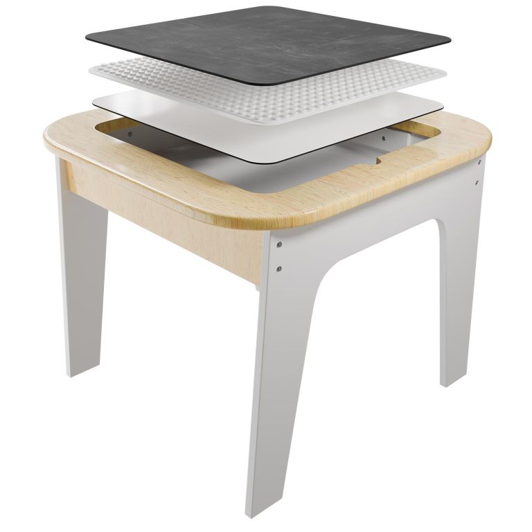 Robustná konštrukcia z prírodného dreva zaisťuje dlhú životnosť a bezpečnosť. Stôl s vymeniteľnými doskami ponúka rôzne herné možnosti – od kreslenia po stavanie kociek. Jednoduchá údržba a jednoduchá montáž poteší každého rodiča.