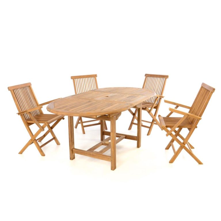 Táto exkluzívna sada z teakového dreva sa skladá z 1 stola a 4 stoličiek. Skladacia stolička aj stôl sú vyrobené z kvalitného teaku a vynikajú veľmi starostlivým spracovaním. Táto kvalitná sedacia súprava sa hodí predovšetkým na terasy a balkóny, kde môžete relaxovať a užívať si príjemné posedenie.