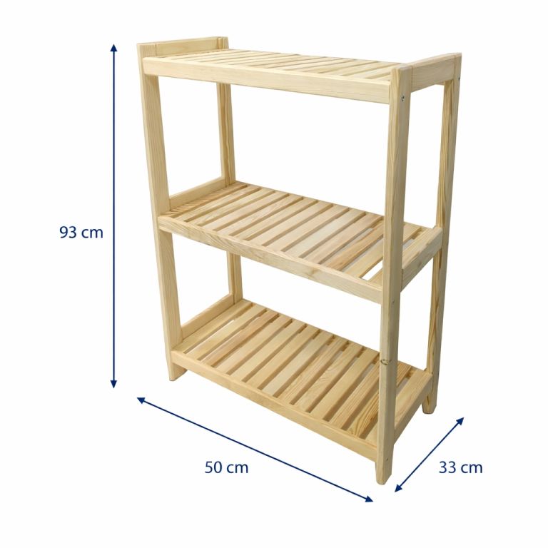 Drevený regál, 3 police, 93 x 50 x 33 cm