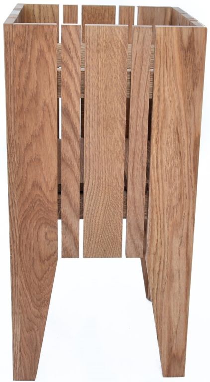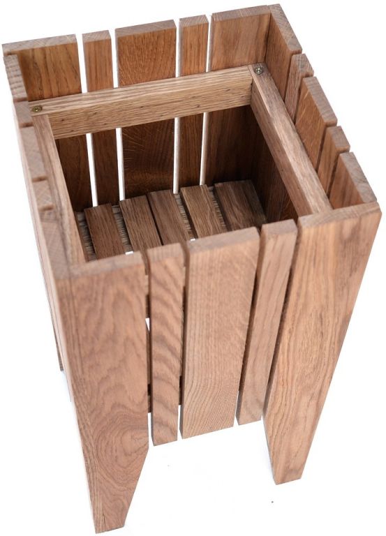 Masívna dubová konštrukcia zaručuje dlhú životnosť a stabilitu. Povrch je morený v prírodnom odtieni, ktorý sa hodí do každého interiéru. Montáž nie je potrebná, stačí vložiť kvetináč s rastlinou. Údržba je jednoduchá – stačí utrieť vlhkou handričkou.