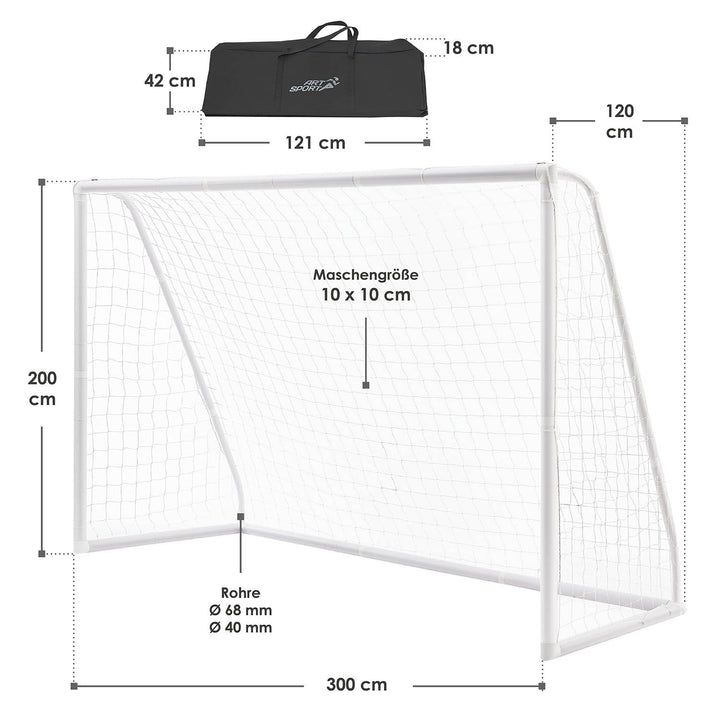 Odolná futbalová bránka s rozmermi 300 × 200 cm s rýchlou montážou, stabilným ukotvením a praktickou taškou vám umožní trénovať kedykoľvek vo vašej zá