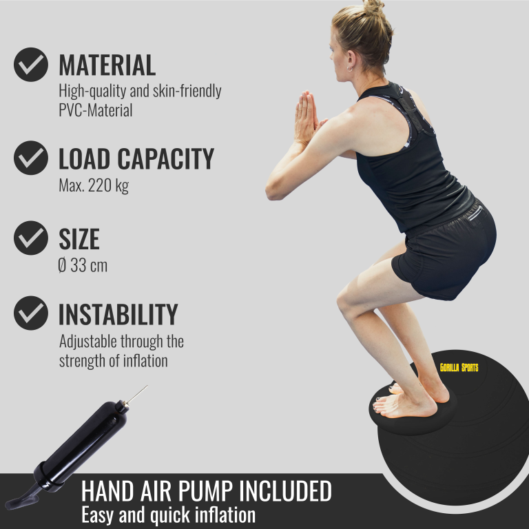 Všestranné použitie: ako podložka na loptu na uvoľnenie tlaku pri sedení alebo ako trenažér rovnováhy