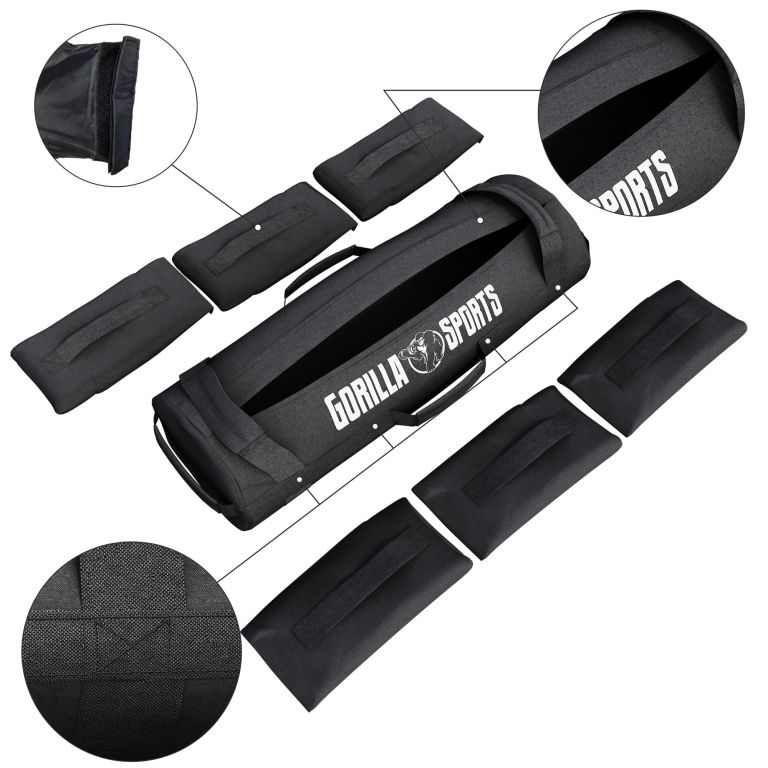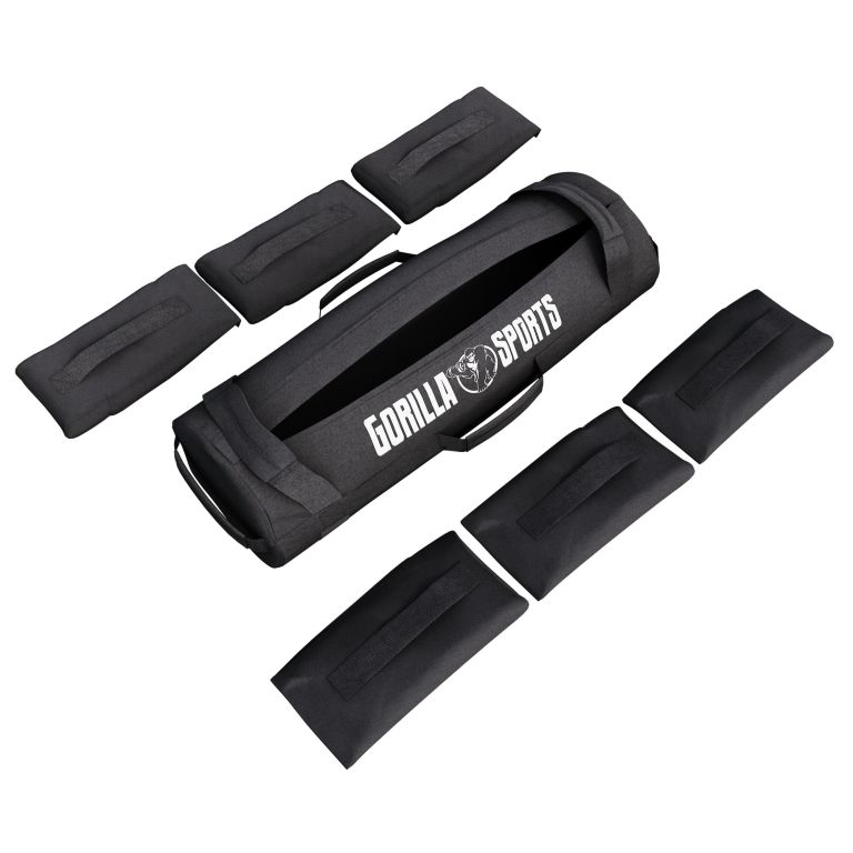 Nastaviteľné fitness záťažové vrece od Gorilla Sports. Vďaka inovatívnemu dizajnu môžete jednotlivé záťažové vrecúška vybrať a prispôsobiť tak svoje tréningy individuálne svojej kondícii. Každé záťažové vrecko naplnené pieskom váži 5 kg, celé vrece váži celkovo 20 kg. Otváranie záťažových vrecúšok je niekoľkokrát prehnuté a je vybavené kvalitným suchým zipsom, ktorý chráni piesok pred vysypaním. Vrece s pieskom má štyri polstrované rukoväte pre pohodlné a bezpečné cvičenie, kvalitnú nylonovú výstuhu s dvojitým prešívaním pre väčšiu odolnosť a praktický zips, ktorý umožňuje kedykoľvek pridať alebo odobrať záťaž.