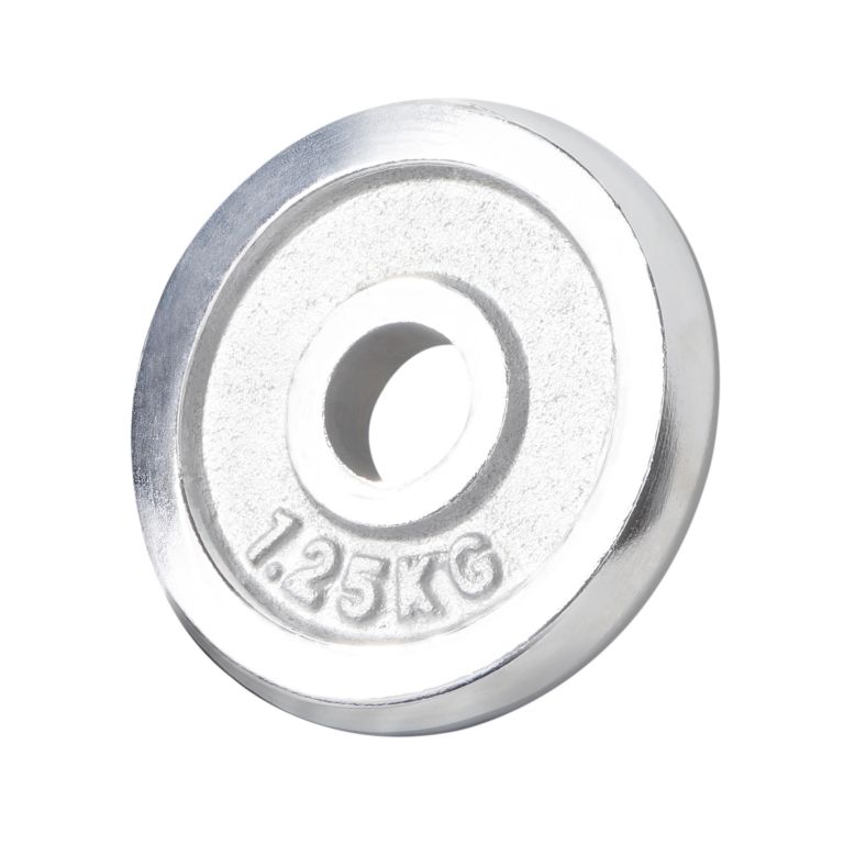 Súprava záťažových kotúčov v chrómovom prevedení s celkovou hmotnosťou 27,5 kg.