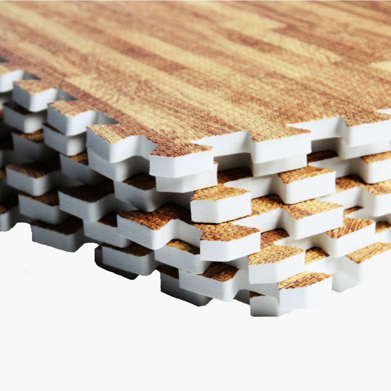 Domáca posilňovňa nie je problém s touto sadou penových podložiek vo farbe svetlého dreva.