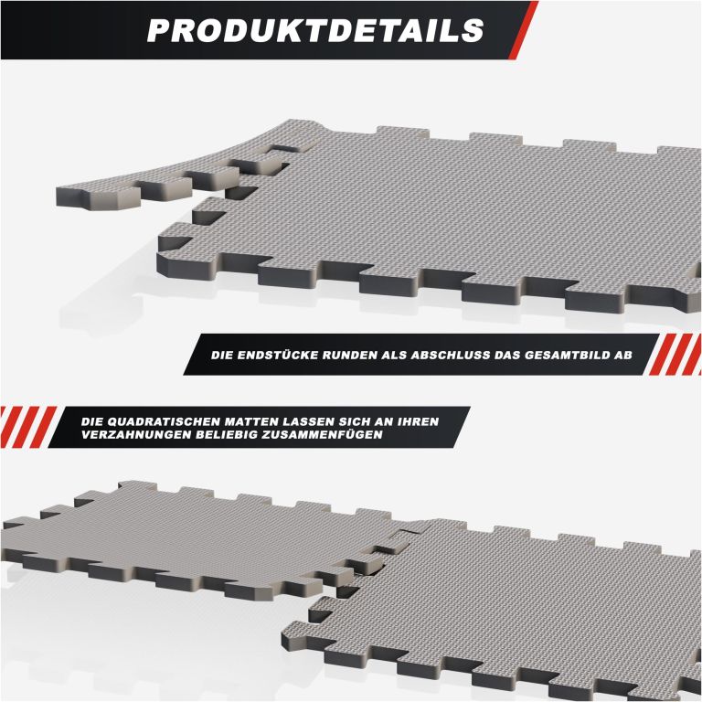 Praktický systém na zapínanie umožňuje rýchlu montáž a variabilné usporiadanie. Odolná pena tlmí nárazy a chráni podlahu pred poškodením. Jednoduchá údržba a dlhá životnosť.
