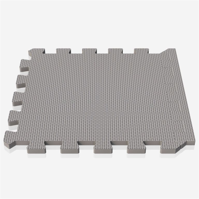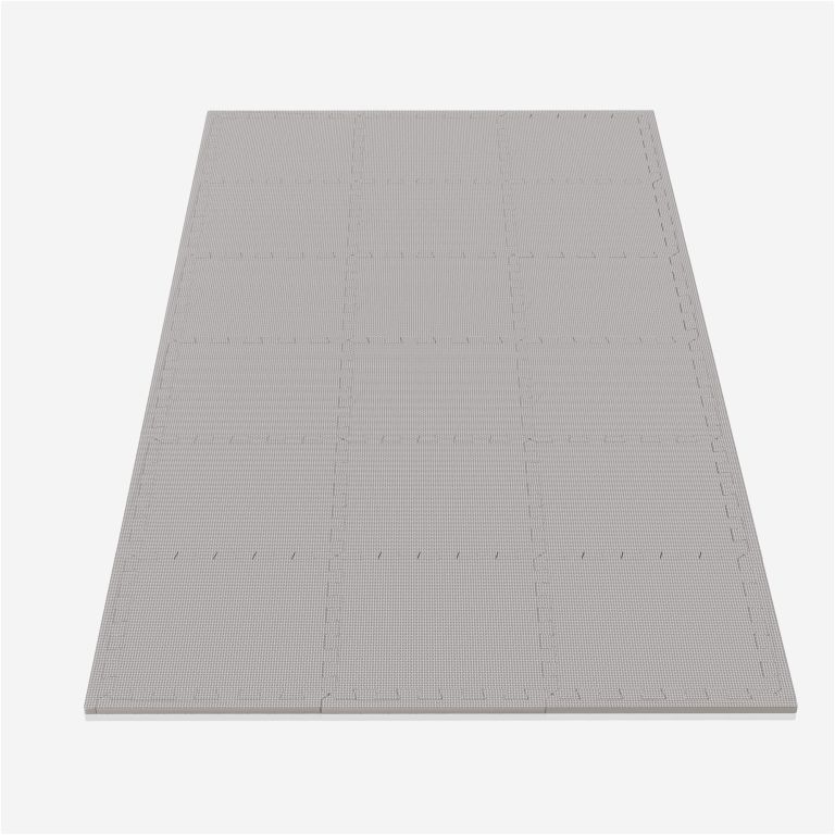 Fitness podložka v šedej farbe chráni podlahu a tlmí hluk. Jednoduchá montáž, univerzálne použitie.