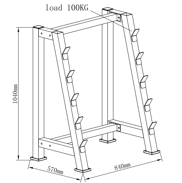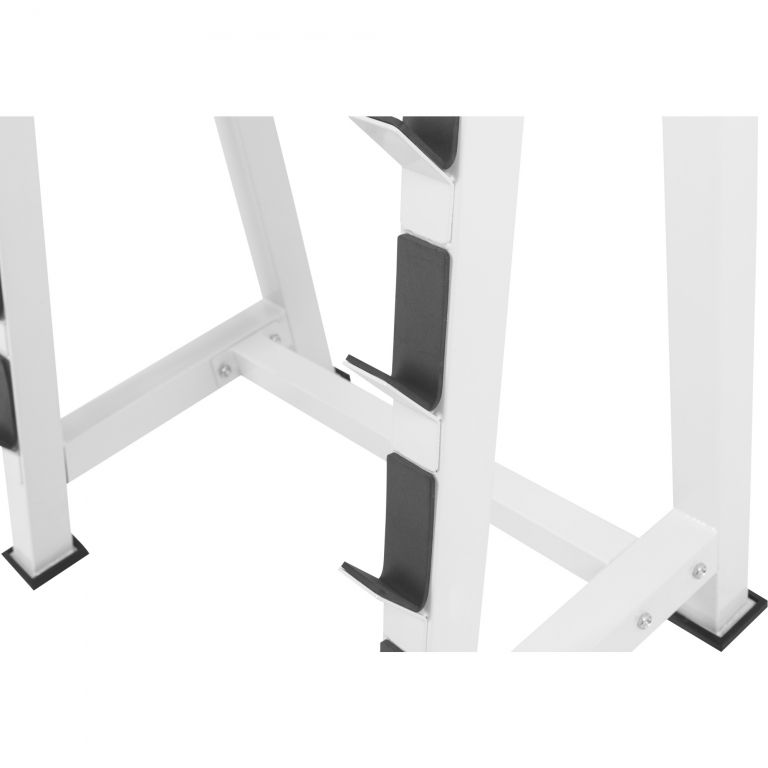 Maximálne zaťaženie jedného úložného ramena je 100 kilogramov, takže svoje činky môžete skladovať aj naložené a máte rýchly prístup k presne tým správnym závažiam pre váš tréningový plán. Vďaka vysokej maximálnej hmotnosti odkladacích ramien je možné skladovať aj napevno namontované činky, teda tyče, z ktorých sa závažia nedajú odstrániť.