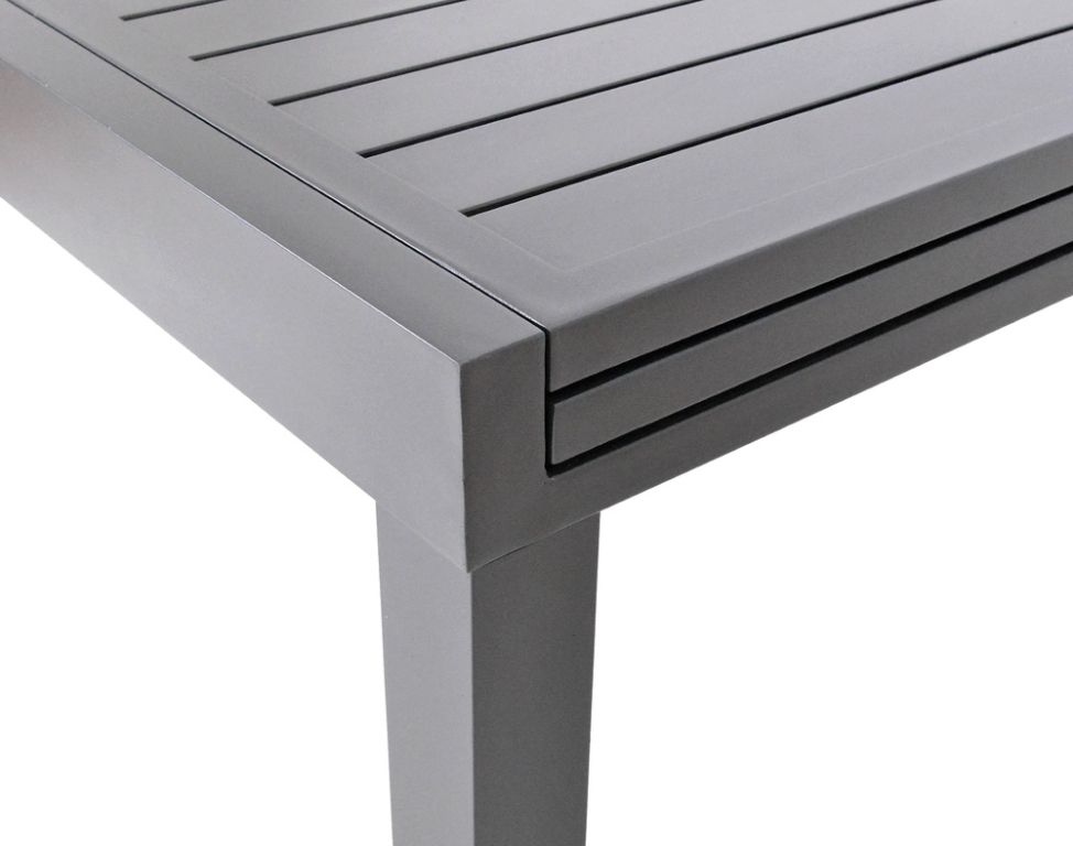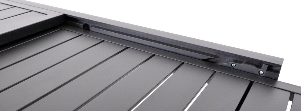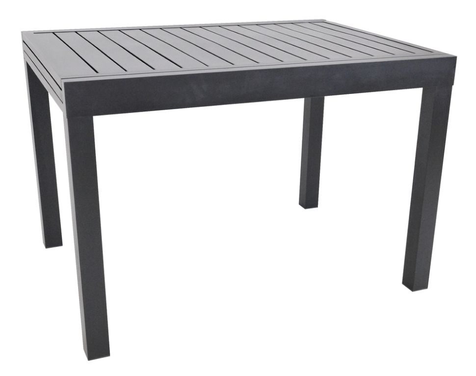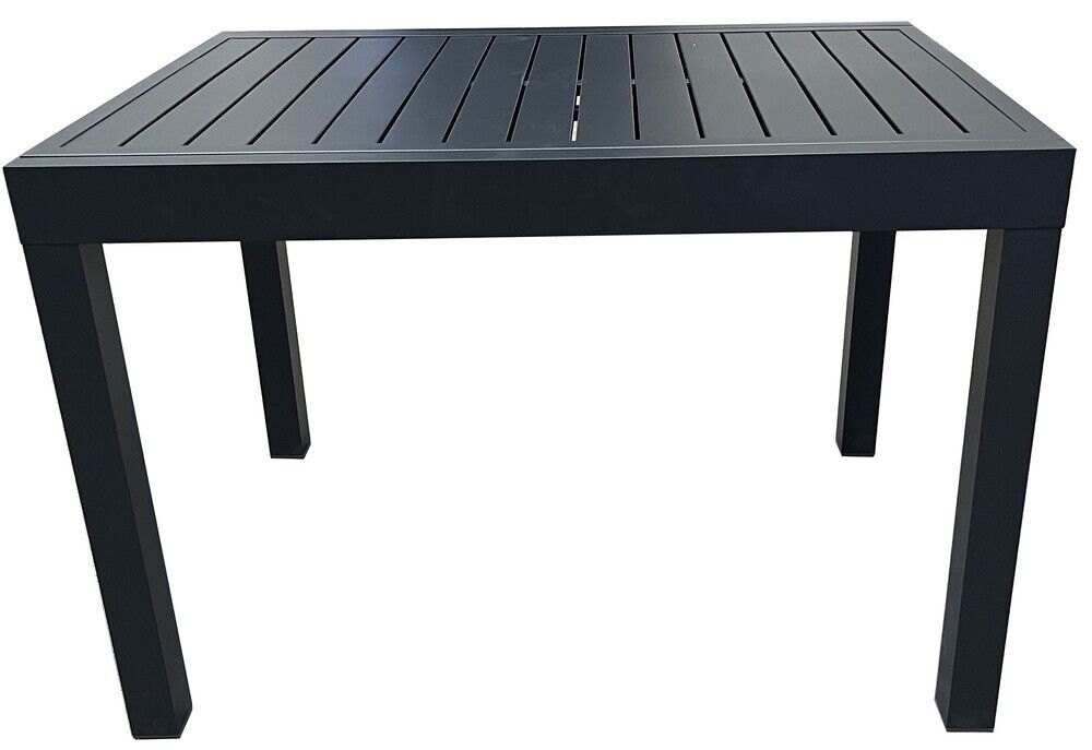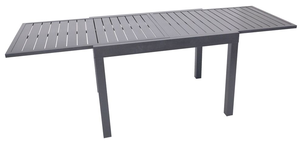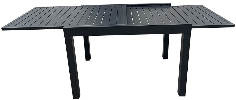 Odolný rozkladací stôl z hliníka v čiernej farbe, vhodný do interiéru aj exteriéru.