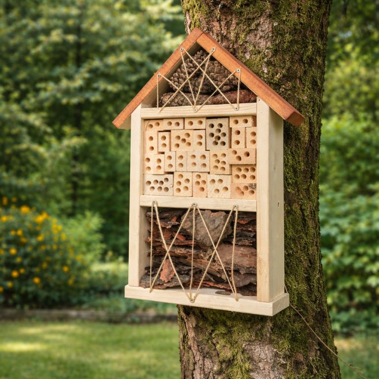 Hmyzí hotel sa odporúča umiestniť vyššie od zeme, najlepšie na strom alebo stenu.