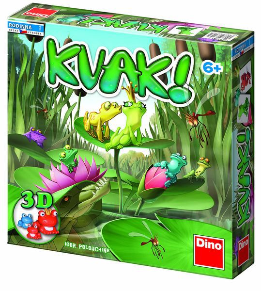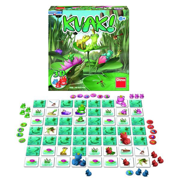 Ve hře Kvak nejde jen o to vypálit protivníkovi rybník. Chcete-li vyhrát, musíte ho celý ovládnout. Pomůže vám k tomu vaše armáda žab, kterou je však nutné náležitě opečovávat. Kuňky totiž budou potřebovat hodně sil, aby se nenechaly zdolat soupeřovými útočnicemi a zákeřnými štikami.Balení obsahuje: 64 kartiček tvořících rybník, pravidla, pro každou barvu 1 žabí královna 3D, 6 žabiček 3D a 6 samčích žetonů, v krabici 30 x 30 cm.Vhodná od 6 let.
