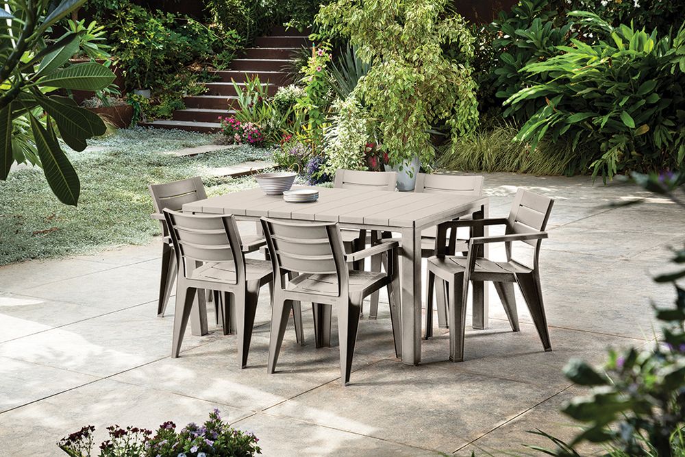 Moderný dizajn a jednoduchá údržba vďaka materiálu zaisťujúcemu odolnosť voči poveternostným podmienkam. Ideálne na terasy, záhrady a balkóny.