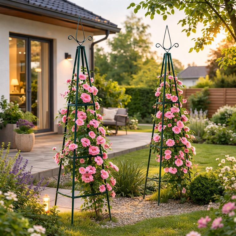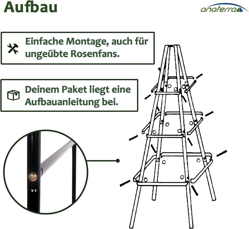 Dodáte svojej záhrade šmrnc a výšku s touto kovovou oporou pre rastliny. Skvele vynikne medzi kvetinami, podporí rast popínavých rastlín a vytvorí pôsobivú vertikálnu dekoráciu. Vhodný pre ruže, brečtan, clematis aj zeleninu. Každý kút záhrady získa nový život a harmóniu.