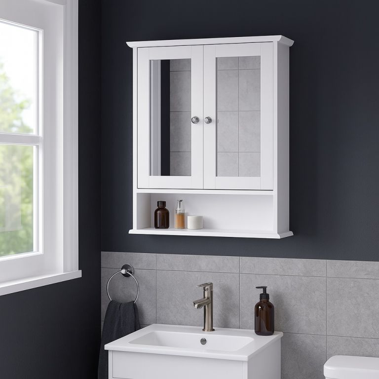 Praktická kúpeľňová skrinka s dvoma zrkadlovými dvierkami šetrí miesto a pridáva úložný priestor aj štýl.