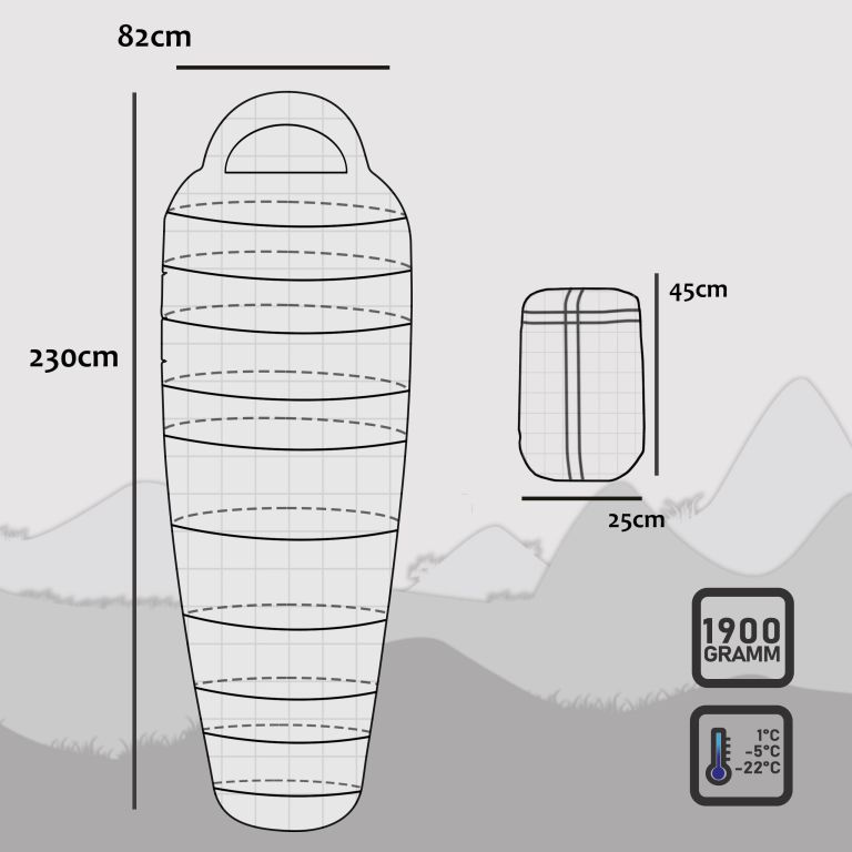 Prenosný: Spací vak je ľahký a dá sa ľahko vziať so sebou. Váži iba 1,9 kg a je dodávaný so stlačenou taškou pre maximálne pohodlie.