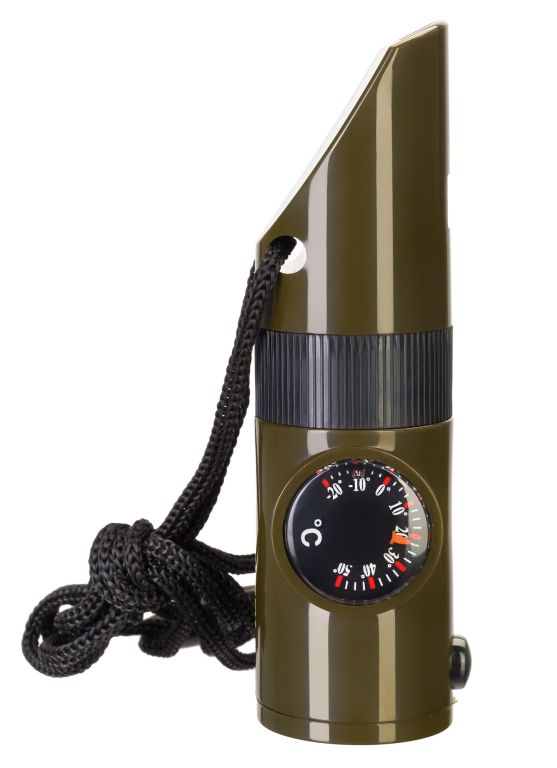 Integrovaný kompas je základ každého správneho zálesáka, ktorý zlepší orientáciu v neznámych prostrediach. Pomôže Vám správne určiť svetové strany prostredníctvom klasickej veternej ružice, keď práve nebudete vedieť kadiaľ kam. Pomocou teplomera zase môžete veľmi jednoducho skontrolovať, aké je aktuálne počasie, vďaka čomu lepšie zvolíte svoj outfit pre náročné expedície a výstupy. Súčasťou multifunkčného nástroja je aj lupa na skúmanie drobných predmetov a nechýba aj malé zrkadlo, ktoré poslúži na základnú hygienu alebo na núdzovú svetelnú signalizáciu.