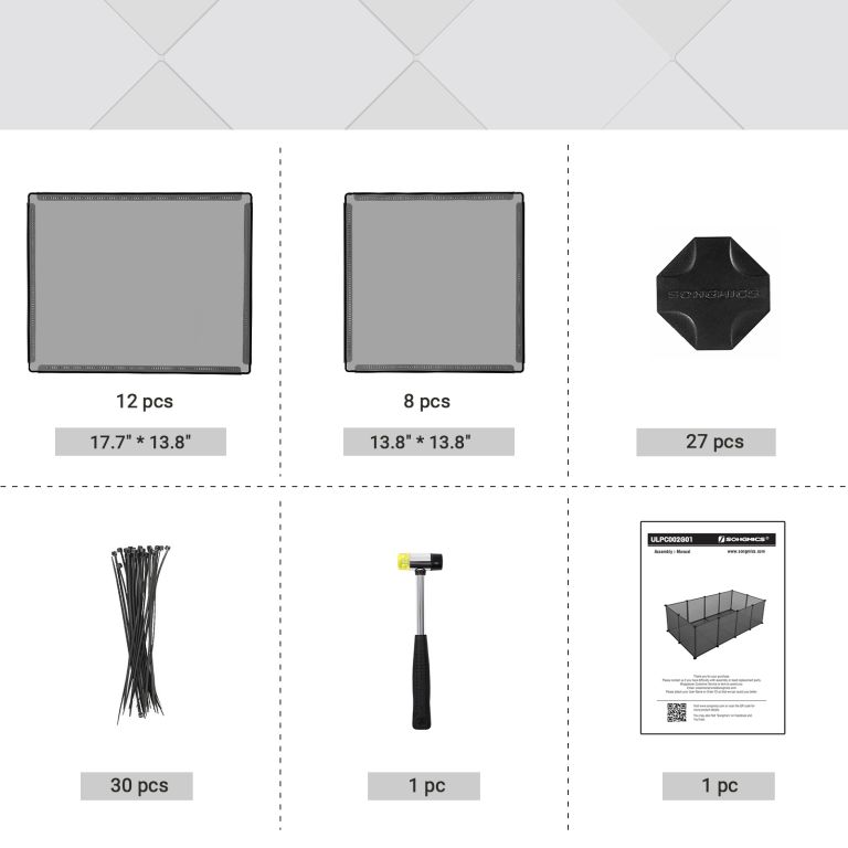 Montáž trvá len niekoľko okamihov vďaka priloženému gumovému kladivku a jednoduchým spojkám. Odolné plastové panely sú ľahké, ľahko sa čistia a chránia podlahu pred nečistotami. Konštrukciu je možné kedykoľvek podľa potreby rozobrať, prestavať alebo rozšíriť.