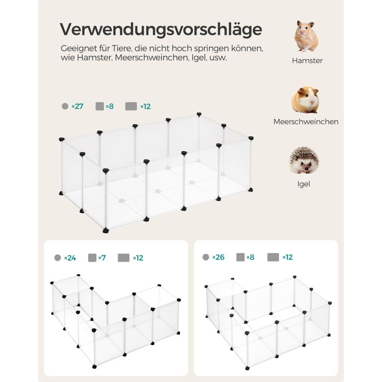 Zobraziť podrobnejší popisModulárny výbeh pre zvieratá, jednoduchá montáž, odolné materiály, biela farba.