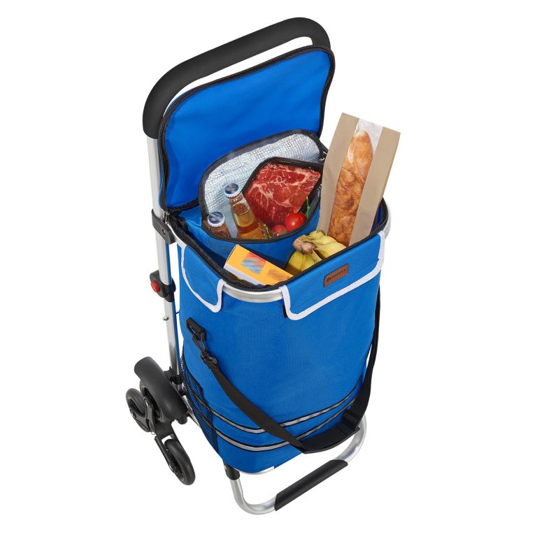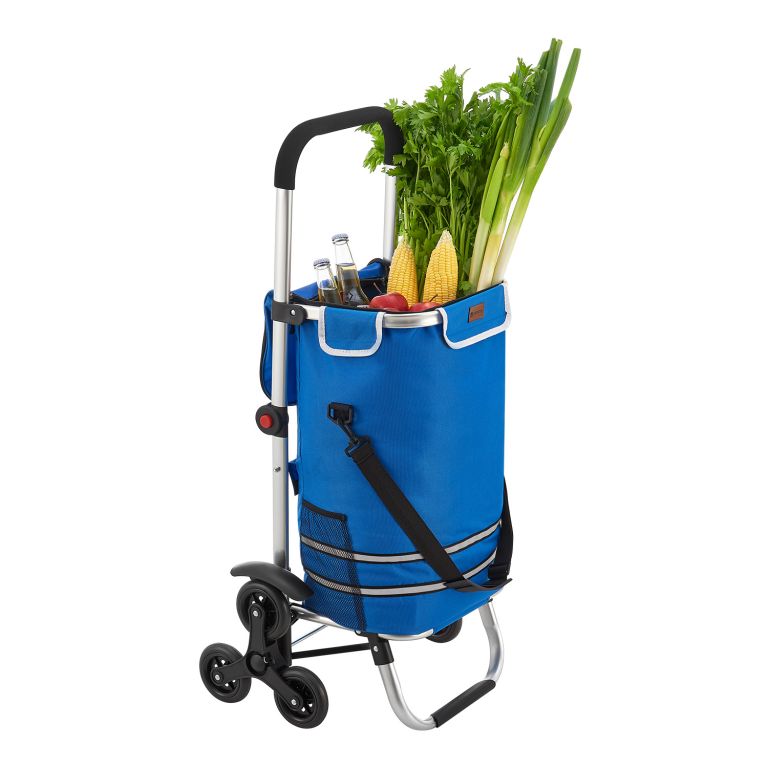 Nákupný vozík 3 v 1 na schody - objem 56 l, modrý