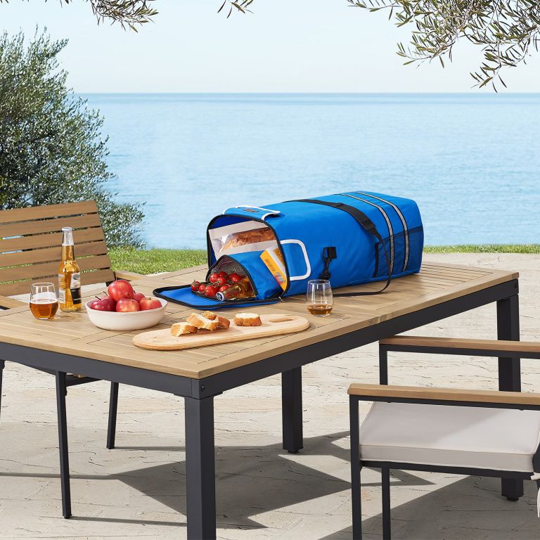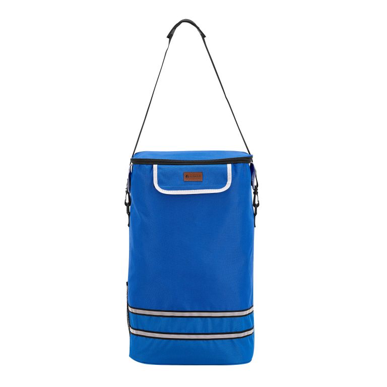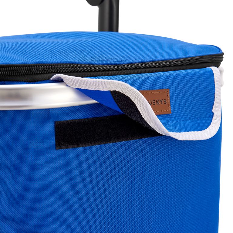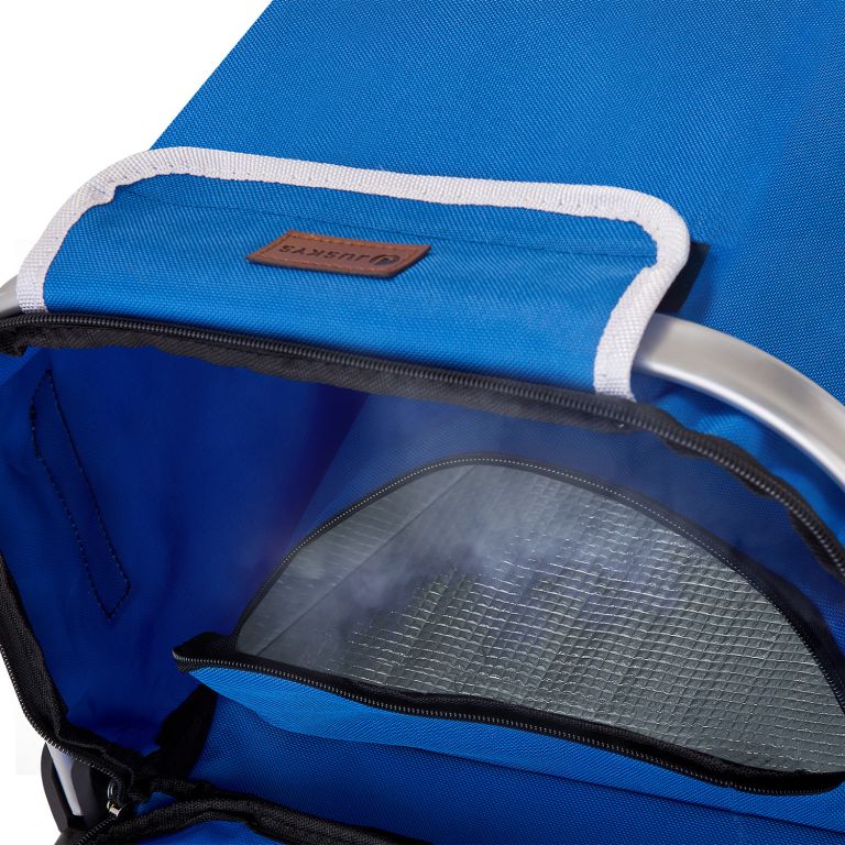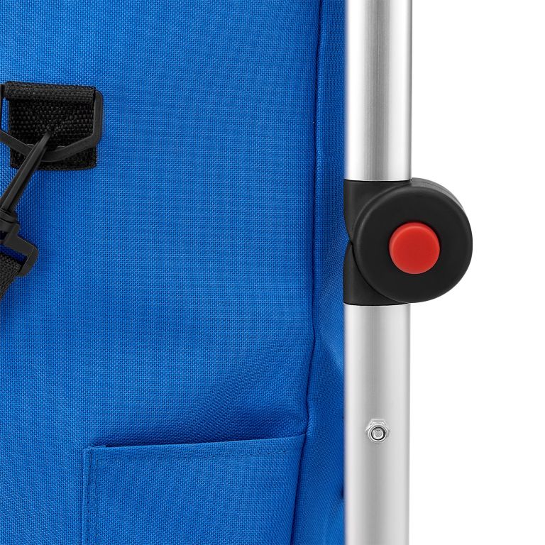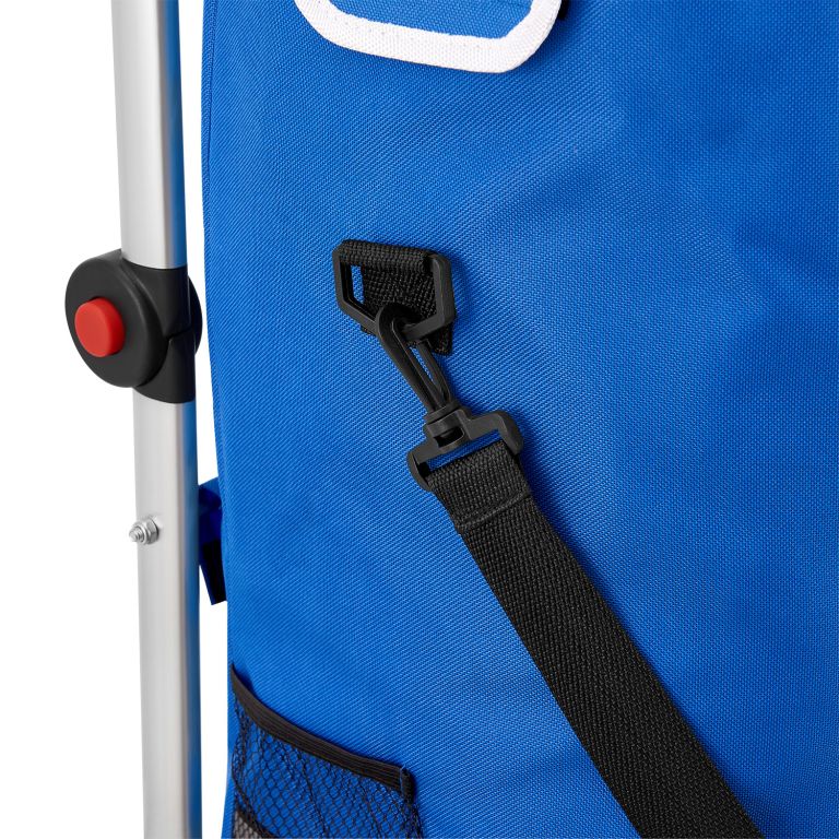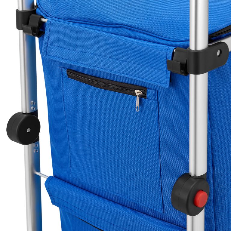 Zobraziť podrobnejší popisŠtýlový modrý vozík na nákup pre pohodlný prevoz nákupu domov.