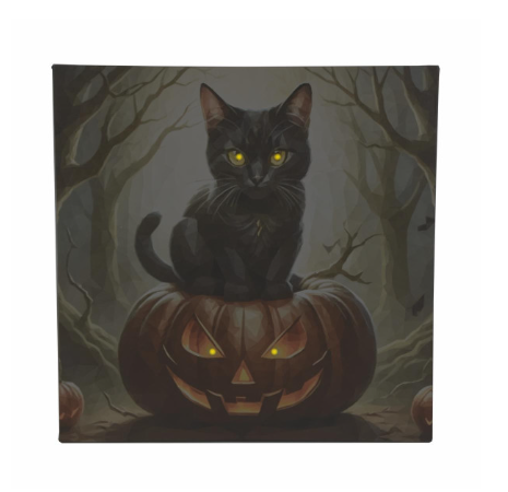 Nástenná maľba mačka na tekvici, 4 LED, 40 x 40 cm