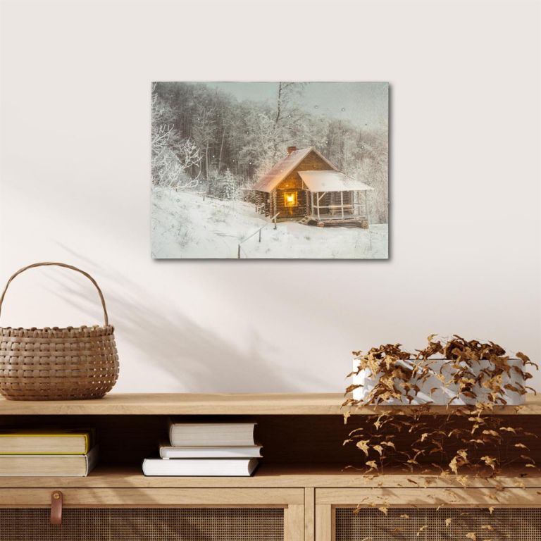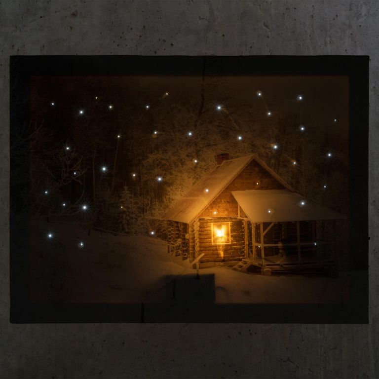 Nástenná maľba Zimný dom, 1 LED, 30 x 40 cm