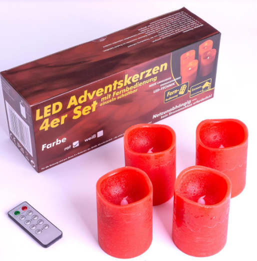 NEXOS Dekoratívna sada 4 adventné LED sviečky, červené