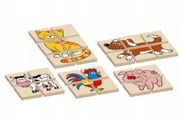 Obojstranná drevená skladačka s motívom zvieratiek.