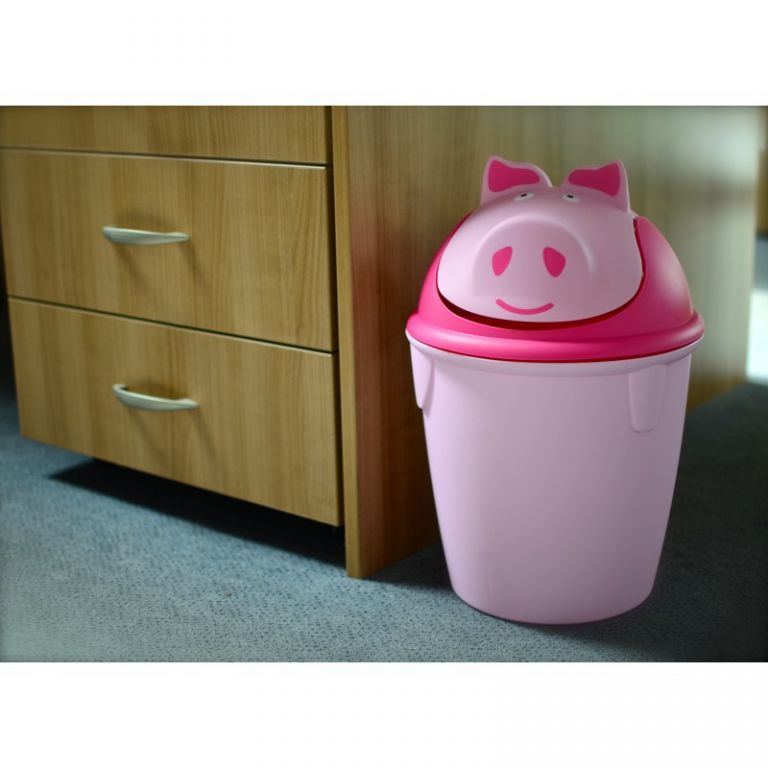 Plastový odpadkový kôš v tvare zvieratka bude mať úspech v každej detskej izbe. Kôš sa otvára ručne pomocou otočného veka v tvare prasiatka. Jeho konštrukcia necháva obsah koša neustále uzavrený a neviditeľný. Kvalita a design značky Curver.